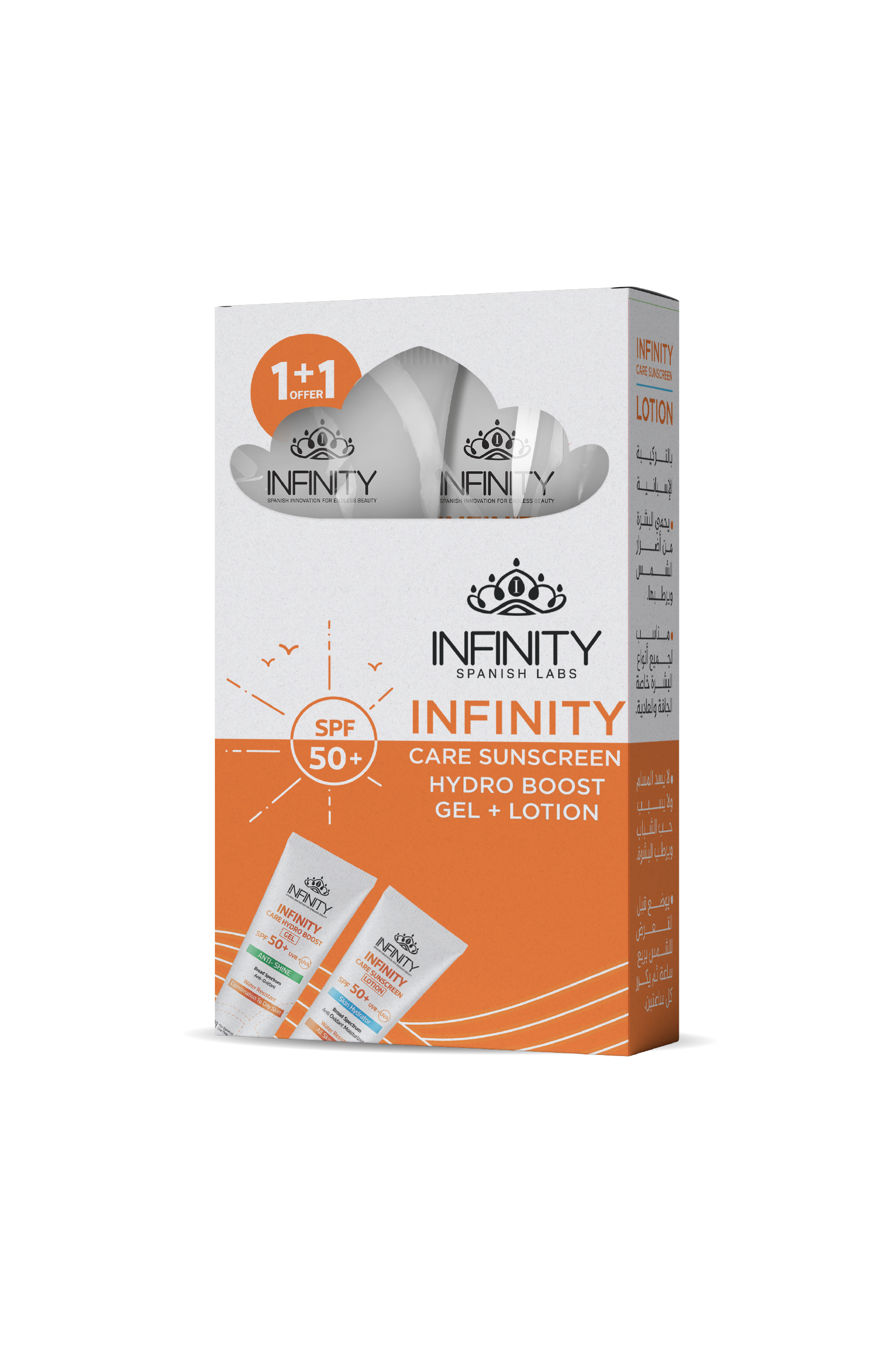 احمي بشرتك حسب نوعها مع الثنائي الفعّال من واقيات الشمس – إنفينيتي كير صن سكرين لوشن SPF50+ و هايدرو بوست جل SPF50+.