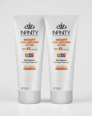 نقدّم لكِ Infinity Care Sunscreen Kids SPF45 – Promopack، الحل الأمثل لحماية بشرة طفلك الحساسة من أشعة الشمس الضارة. بتركيبة مرطّبة ومقاومة للماء، يوفر واقي الشمس حماية موثوقة بمعامل SPF45+ ليحافظ على بشرة طفلك آمنة من الأشعة فوق البنفسجية وحروق الشمس أثناء اللعب أو الأنشطة الخارجية.